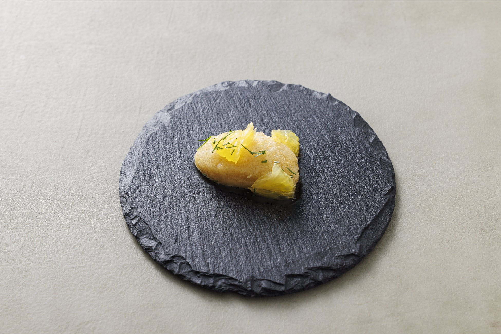八朔の酸味とアールグレイの香りがマッチした、すっきりとコースを終える締めの一品。刻んだディルがアクセントに。