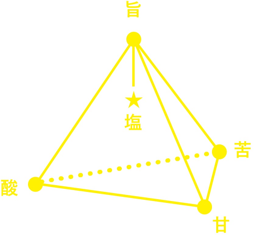 「5味+1」とは「5味に辛味、食感、香りが加わることで立体的で奥行きがある料理」のこと。5味の「甘味、塩味、酸味、苦味、旨味」と+1の「辛味、食感、香り」それぞれの味の強さがその料理のカタチを定め、個性となり、全体はまとまりながら(どこか懐かしさもありながら)これまでに食べたことがない味(=sioらしさの一つ)を作り出しています。