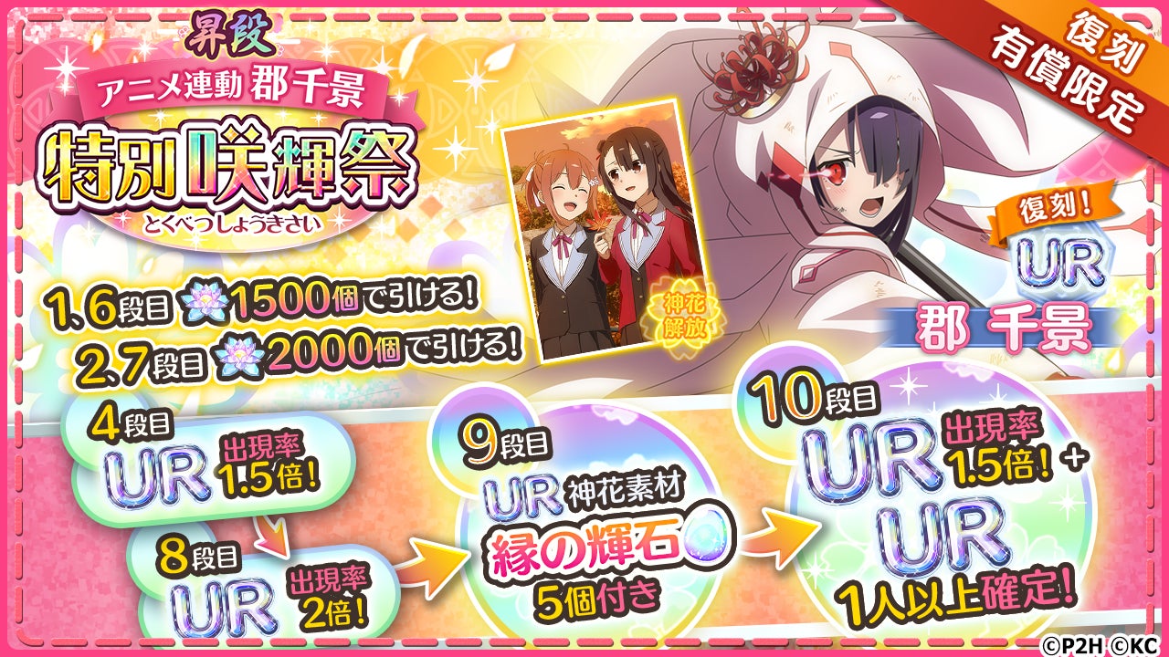 - 「復刻 昇段 アニメ連動 郡千景 特別咲輝祭」開催中!!