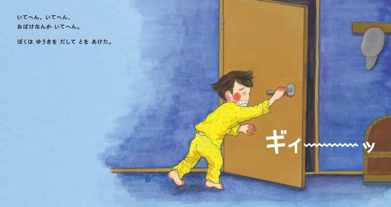 でも、実際にオバケに会ったら、意外と怖くないかもよー! なんて、うそ、うそ! こんなおばさんになった私でも時々、なんだか怖い時があるから、夜中におしっこに行くのは、誰だって、怖いよねえ…。