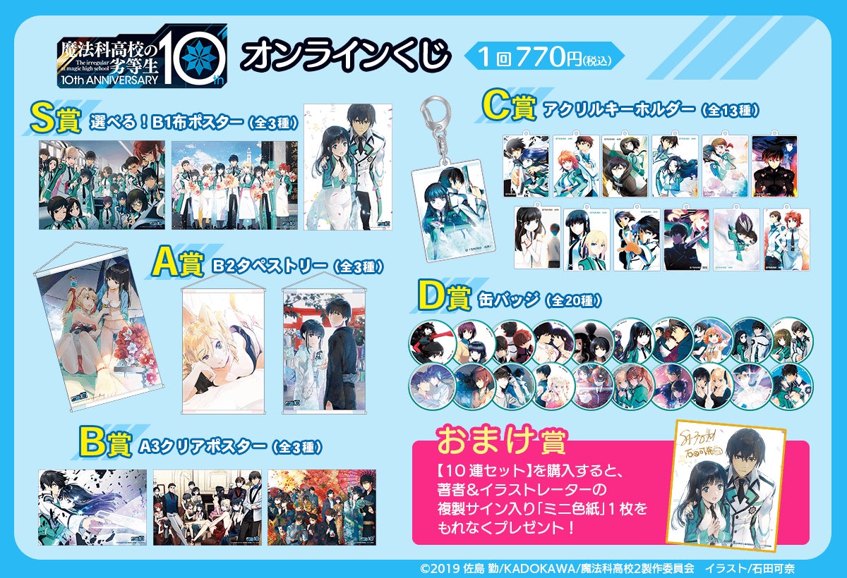 賞品は、シリーズ10周年を迎えた『魔法科高校の劣等生』から、原作イラスト・石田可奈氏の貴重なイラストを使用したオリジナルグッズとなります。