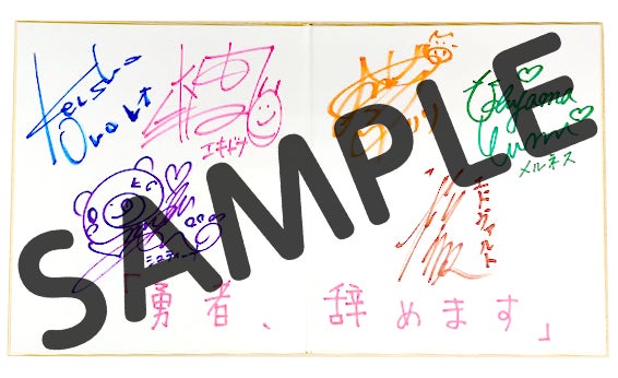 対象期間中に『オリジナルボイスドラマ 勇者、辞めます 魔王軍、飲食店を経営する』をご購入いただき、プラットフォーム内のプレゼントキャンペーンページにてエントリーされたお客様の中から、抽選で2名様に「出演声優陣による寄せ書き直筆サイン色紙」をプレゼントいたします。