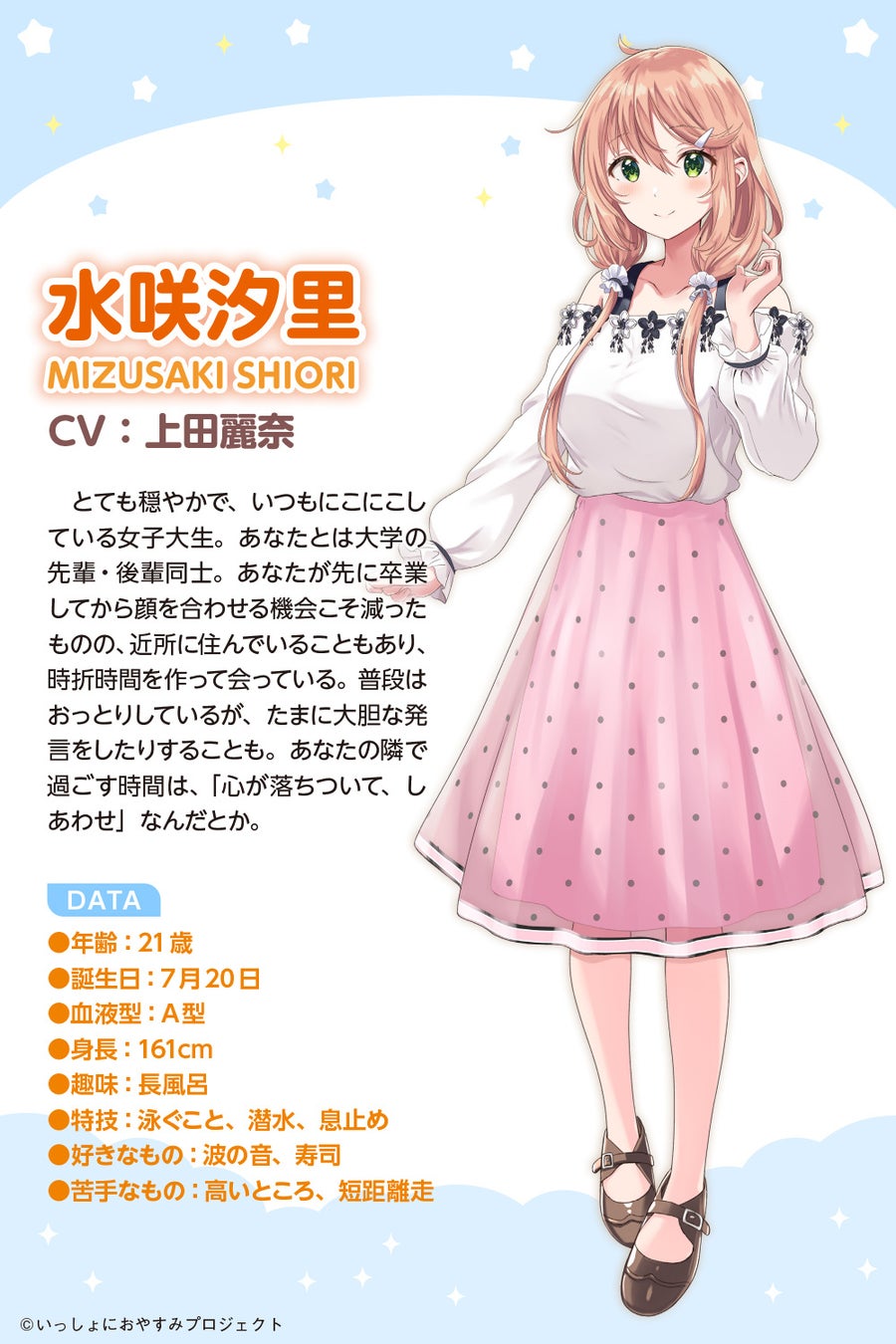 『しょにおや!』ASMRおやすみドラマ第10弾は、後輩女子大生・水咲汐里(CV:上田麗奈)が小川や温泉であなたをのんびり癒します♪