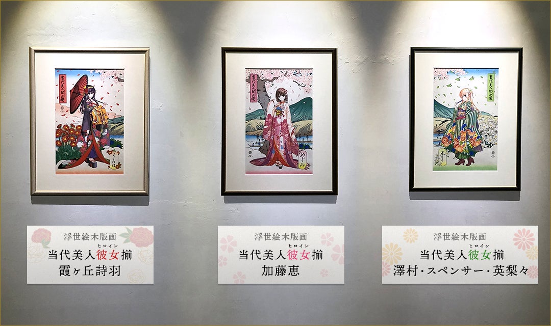 『冴えない彼女の育てかた』浮世絵木版画『当代美人彼女揃 三枚綴』198,000円(税込)