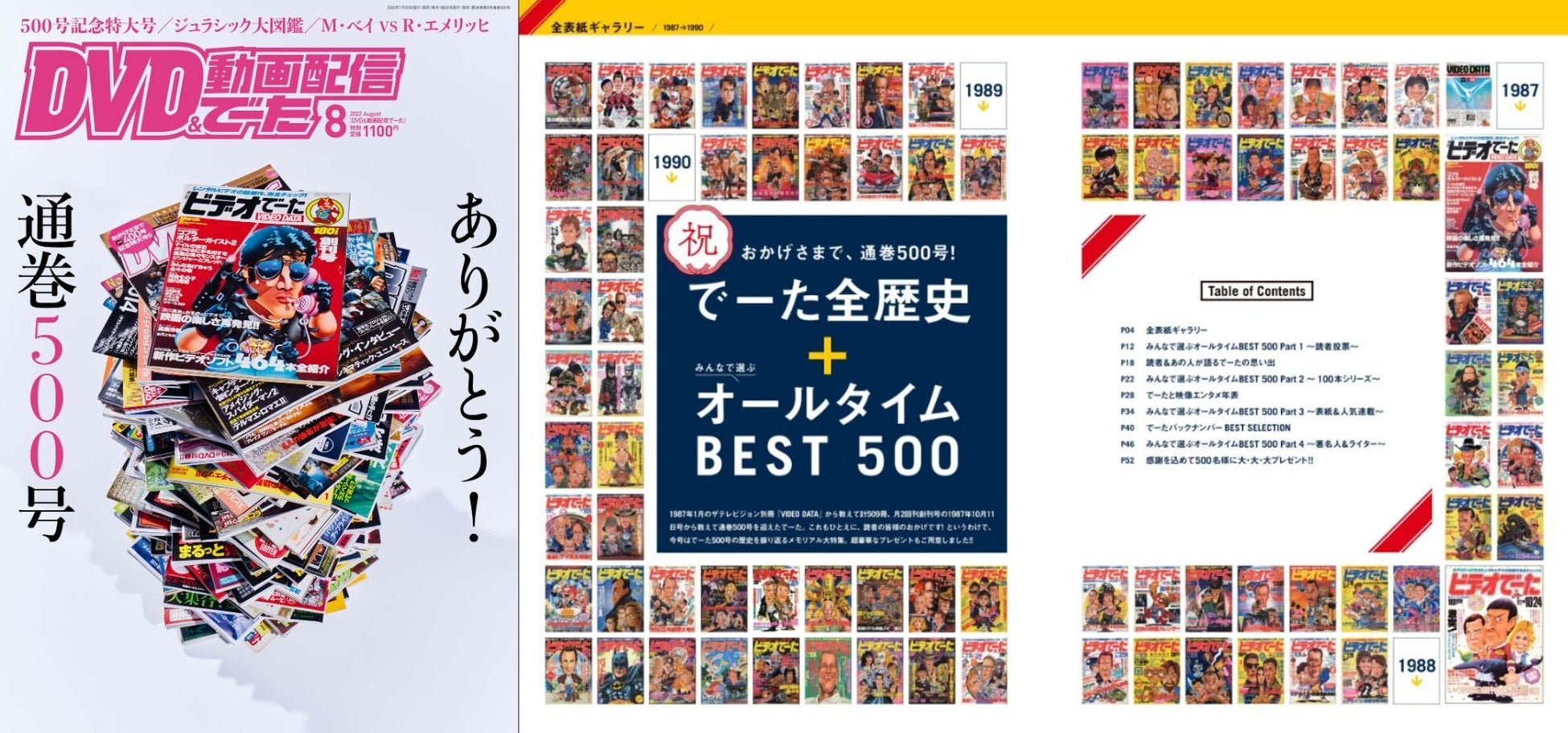 でーた全歴史+みんなで選ぶオールタイム BEST 500(全表紙ギャラリー/みんなで選ぶオールタイム BEST 500 Part1 ~読者投票~/読者&あの人が語るでーたの思い出/みんなで選ぶオールタイム BEST 500 Part2 ~100本シリーズ~/でーたと映像エンタメ年表/みんなで選ぶオールタイム BEST 500 Part3 ~表紙&人気連載~/でーたバックナンバーBEST SELECTION/みんなで選ぶオールタイム BEST 500 Part4 ~著名人&ライター~/感謝を込めて500名様に大・大・大プレゼント!!)