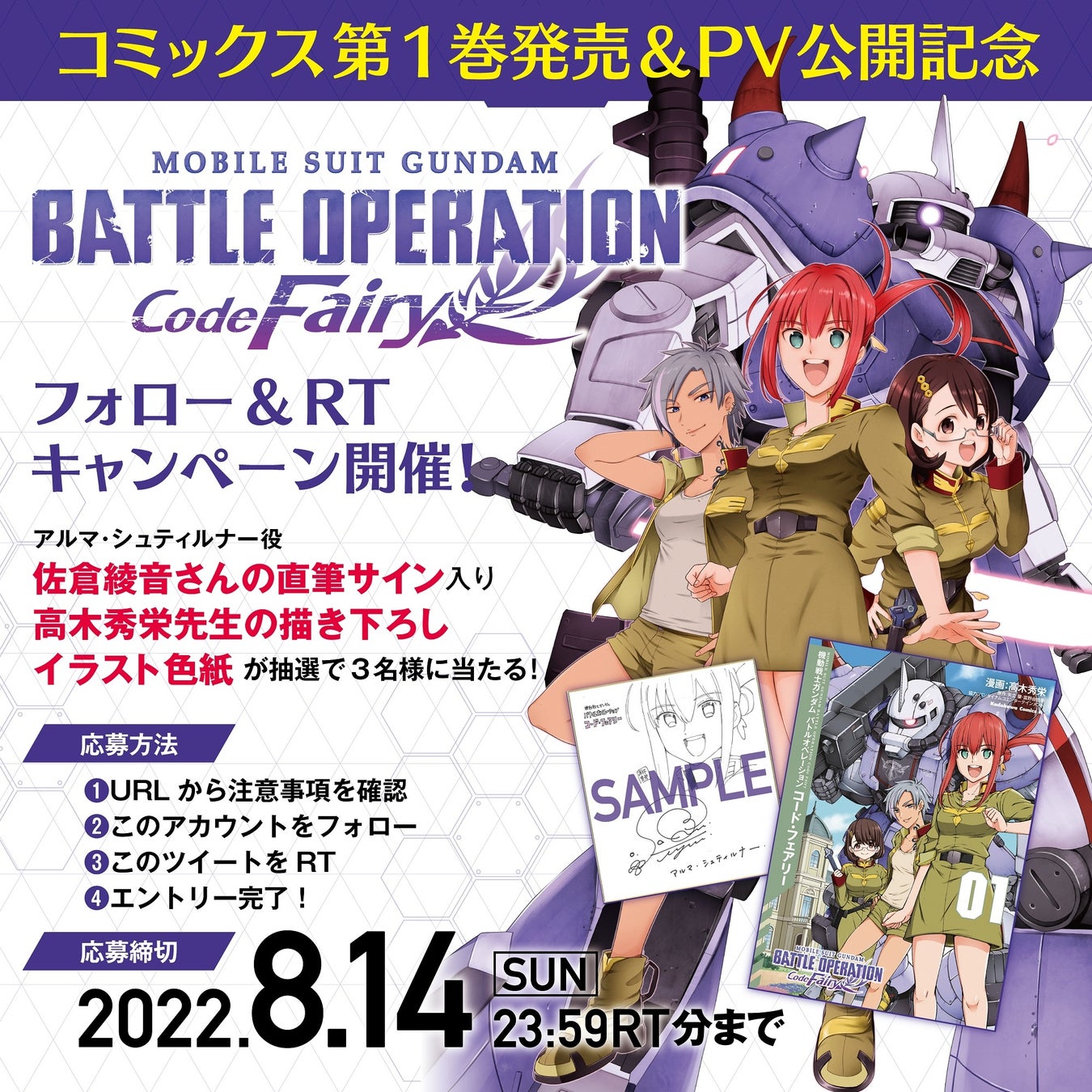 さらに、ガンダムエース公式Twitter(@gundam_ace1)では佐倉綾音さんのサインと高木先生の描き下ろしイラスト入り色紙が当たるプレゼントキャンペーンも実施中!