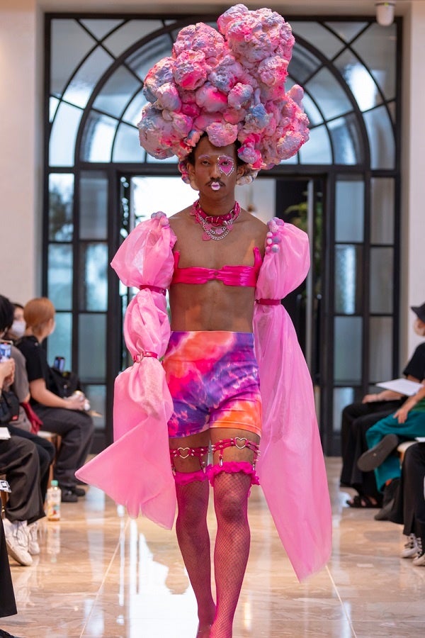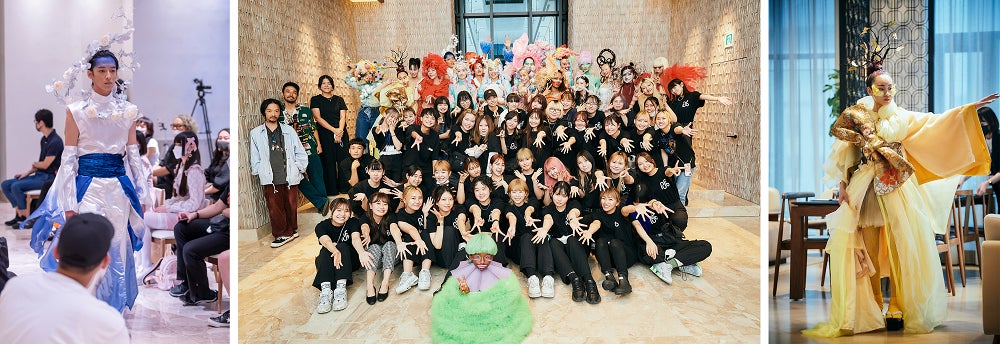 バンタンデザイン研究所のメンバーが手掛けたヘアメイクショーでは、監修講師にヘアスタイリストのKUNIO KOHZAKI氏、ATSUSHI TAKITA氏、メイクアップアーティストのYUKA HIRAC氏とCHACHA氏を迎え、ヘアメイク業界のトップクリエイターやインフルエンサー約50名が来場。メンバーは「PEACE」を“多様性の時代”や“虹”などと捉え、性別や国籍を超えてイメージした作品20体を発表しました。