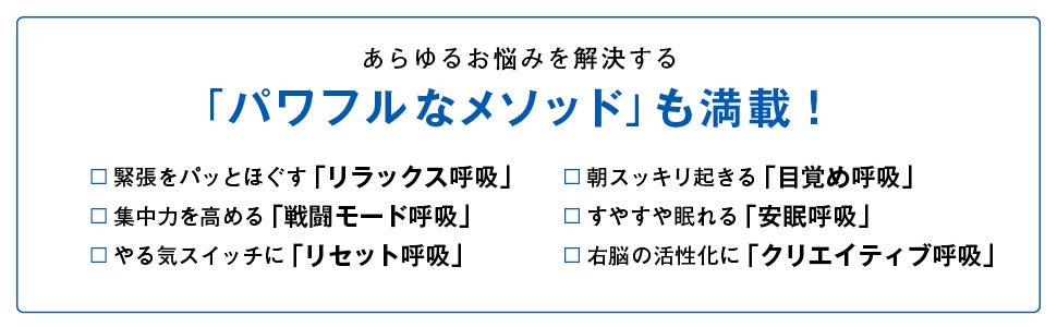 すやすや眠れる「安眠呼吸」、右脳の活性化に「クリエイティブ呼吸」、