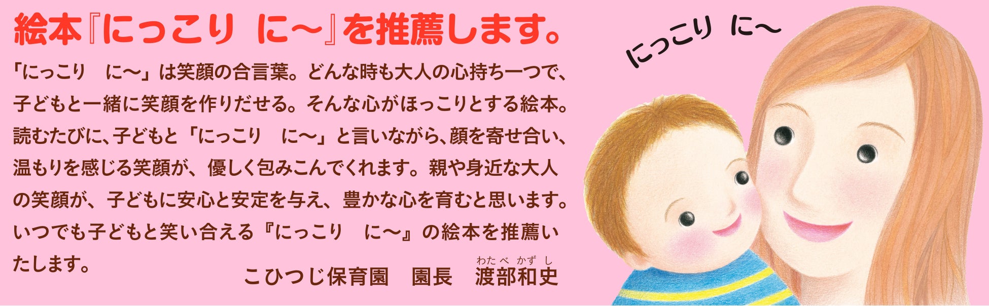 ・「にっこり に~」の笑顔の余韻が皆の顔に残る、ほっこりする絵本です。(本田こひつじ保育園 園長)