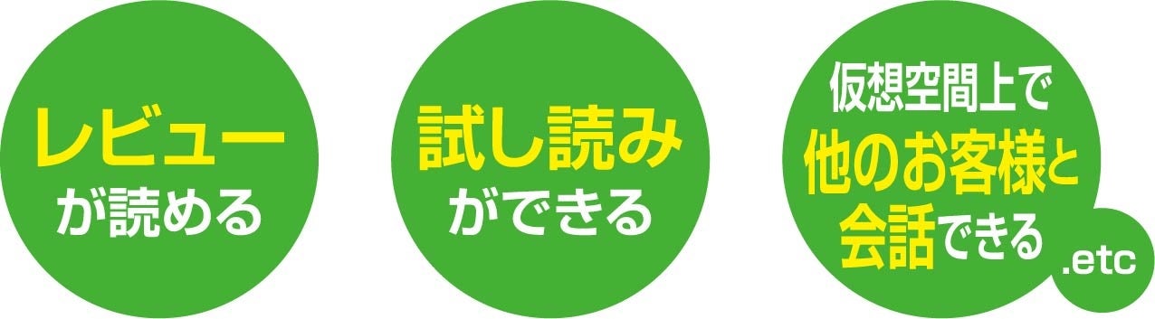仮想空間に再現した未来の書店「メタバース書店」にアクセスすると、メタバース書店を歩きながら、レビューを見たり、試し読みができて、アクセスしている他のお客様と仮想空間上で会話も楽しめるなど、お客様の本選びをサポート!