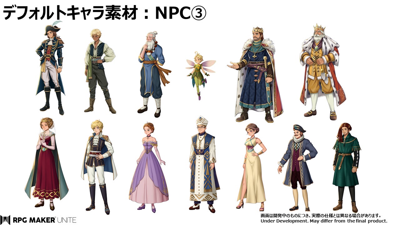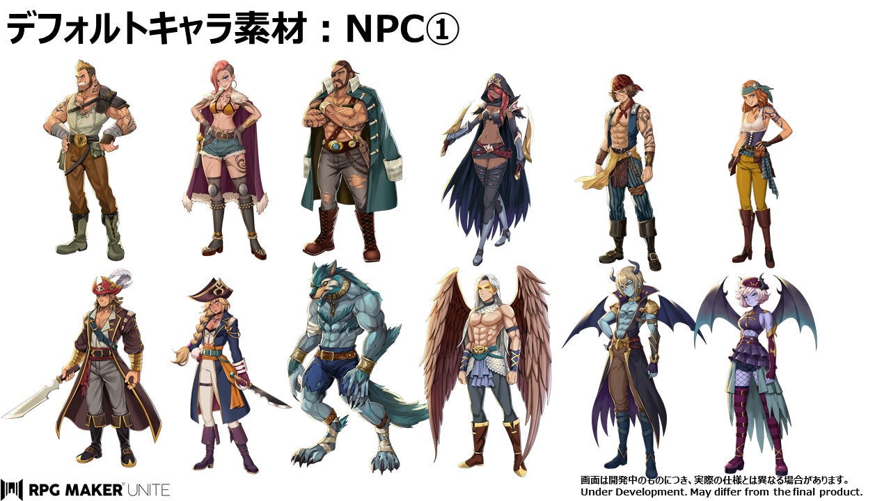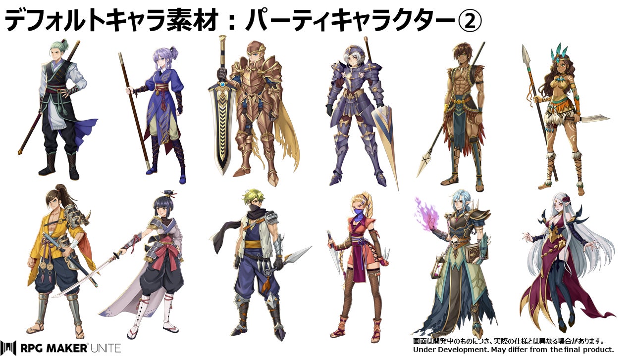 これまでの情報公開でも、デフォルトキャラクターを数体紹介してきましたが、いずれも公式サンプルゲーム内に出番のあるキャラクターでした。本日は、サンプルゲームに登場しないキャラクターも含めて、全部公開します!