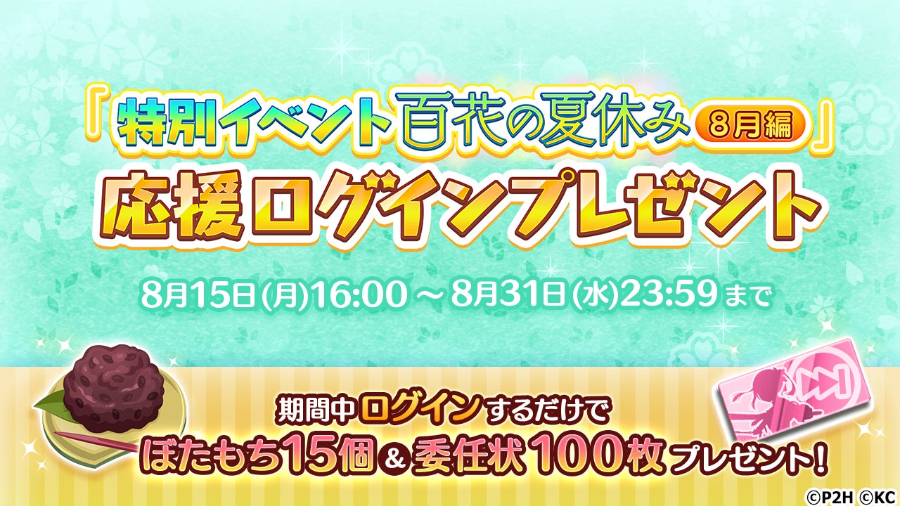 「特別イベント 百花の夏休み 8月編」応援ログインプレゼント
