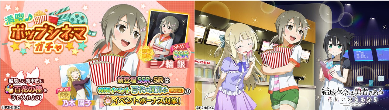 新登場中の赤属性『SSR 楽しさシェアリング 三ノ輪銀』 と黄属性『SR バルーンジャンプ 乃木園子』は「特別イベント 百花の夏休み 8月編」のイベントボーナス対象です。