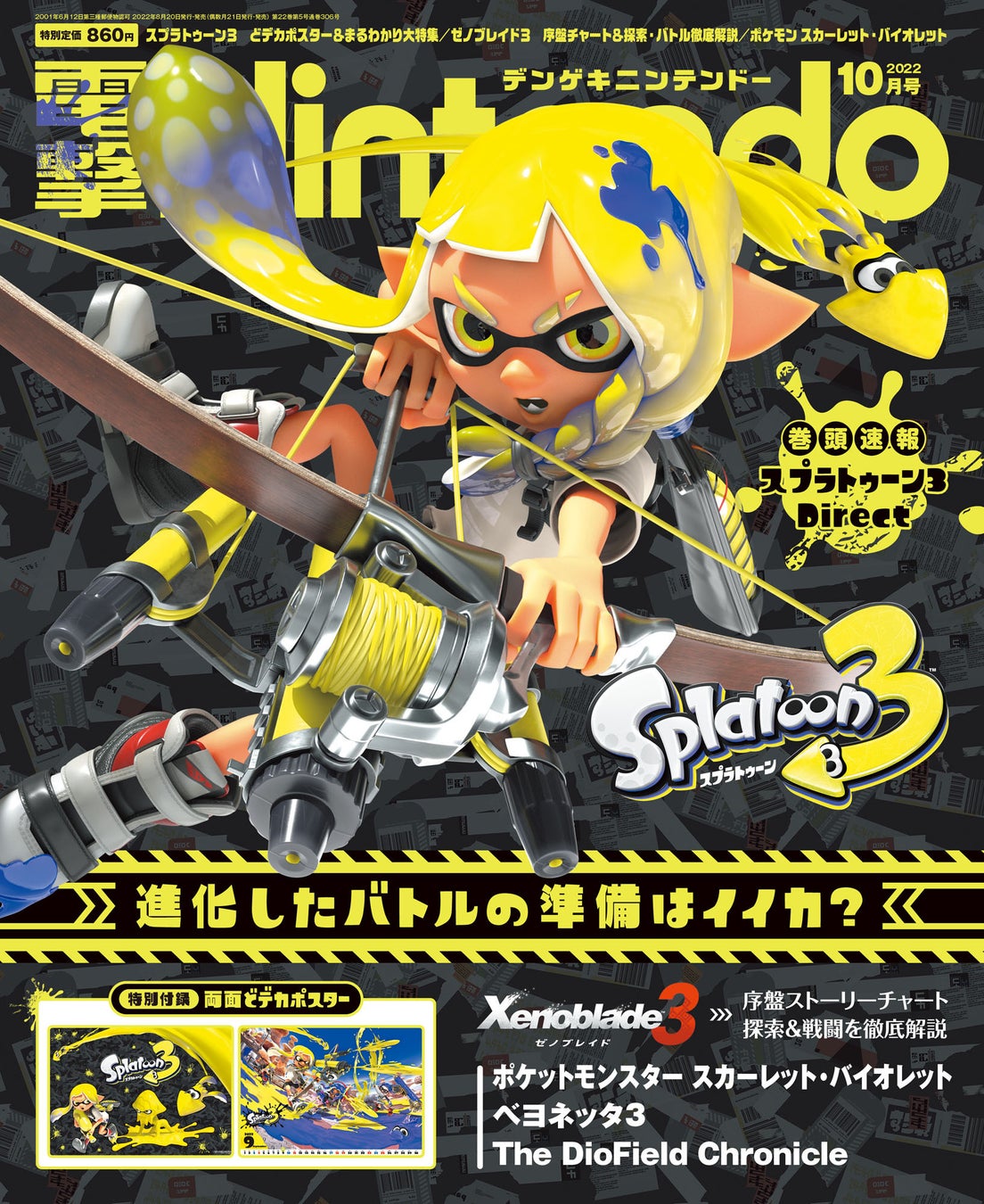 『電撃Nintendo』2022年10月号は、9月9日に任天堂より発売されるNinendo Switch用アクションゲーム『スプラトゥーン3』を表紙・付録・巻頭特集で取り上げています。