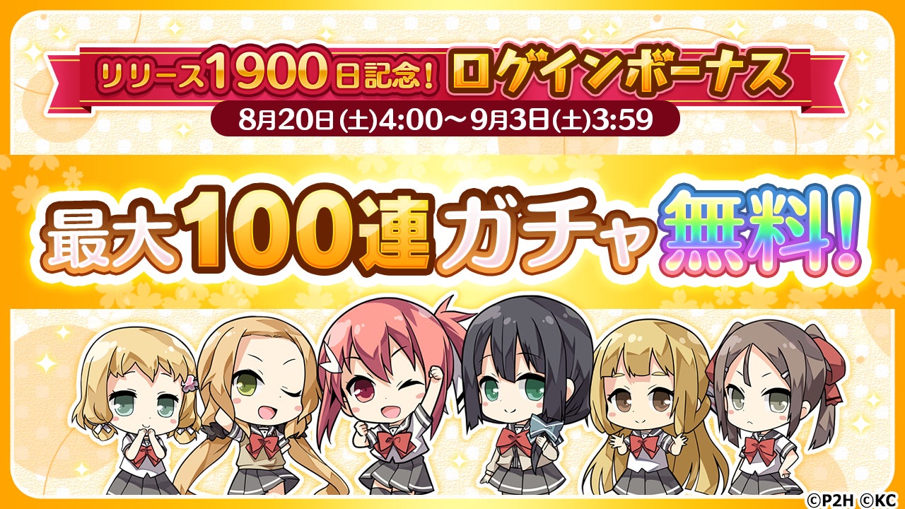 アプリリリース1900日を記念して、最大100連分のガチャチケットが手に入るログインボーナスを開催!