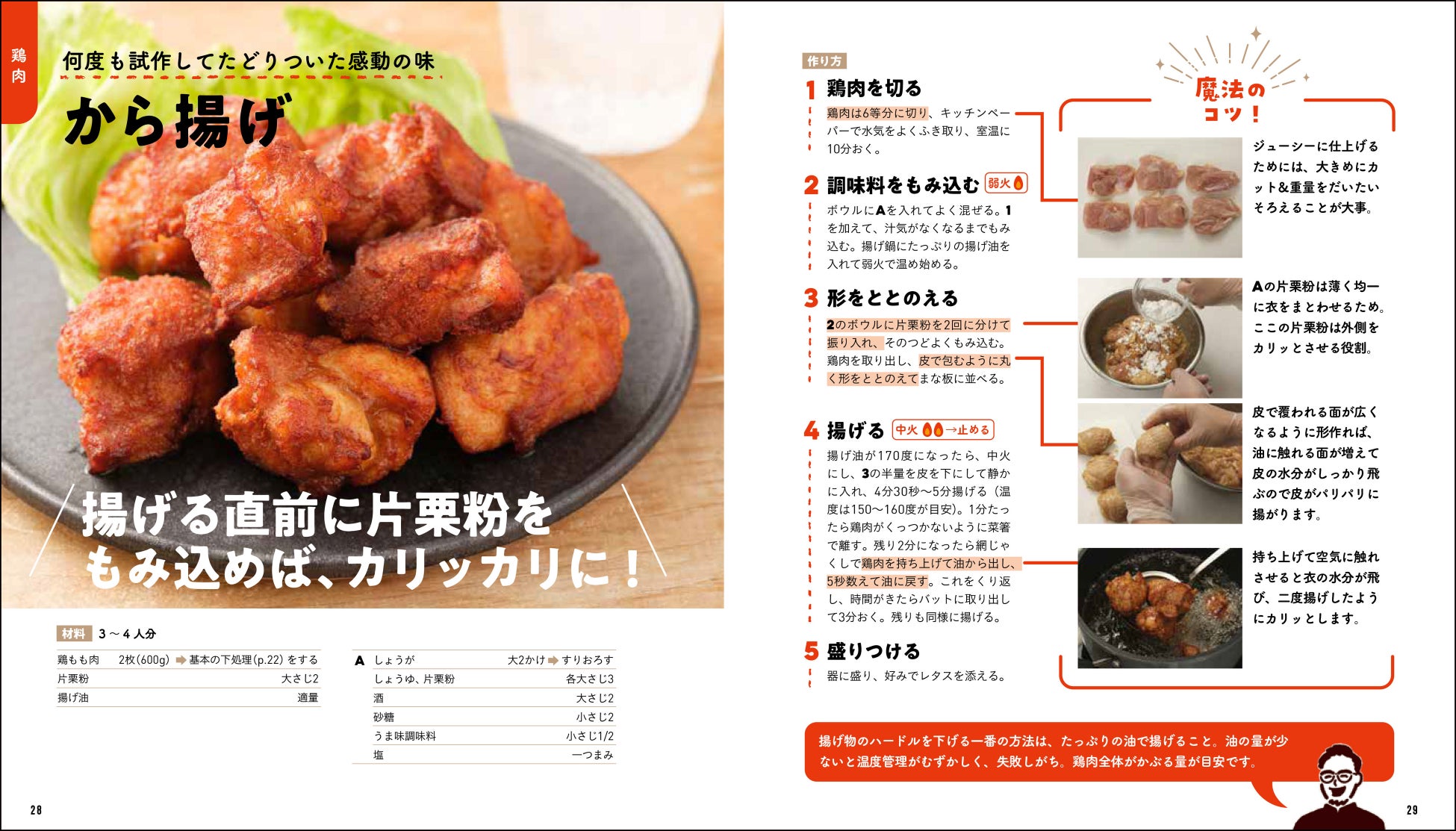 そんな食事処さくらさんの作り方がしっかり伝わるよう、手順ごとに火加減のアイコンを表示し、「魔法のコツ」をポイント写真付きで解説するなど、本書ではレイアウトも工夫しています。