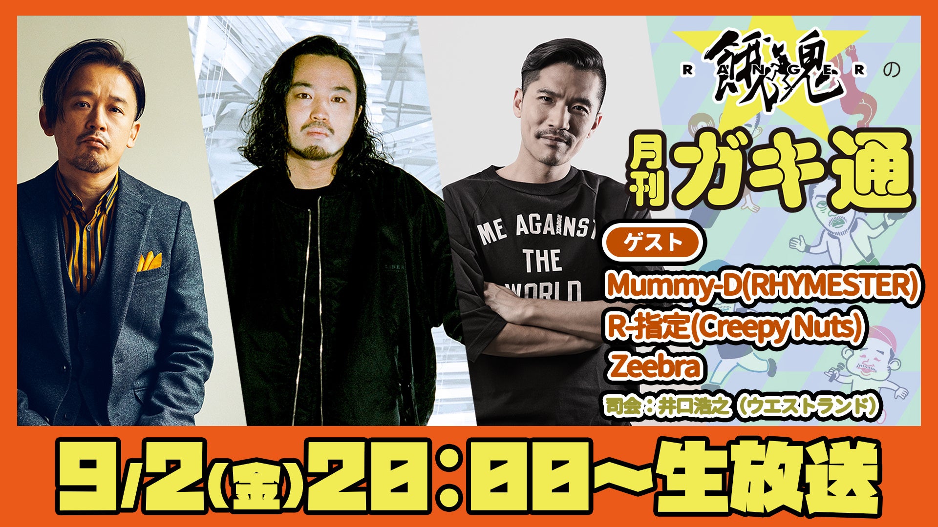 第7回の配信ではゲストにMummy-D(RHYMESTER)、R-指定(Creepy Nuts)、Zeebraと名立たるラッパーが大集合。餓鬼レンジャーとゲストによる