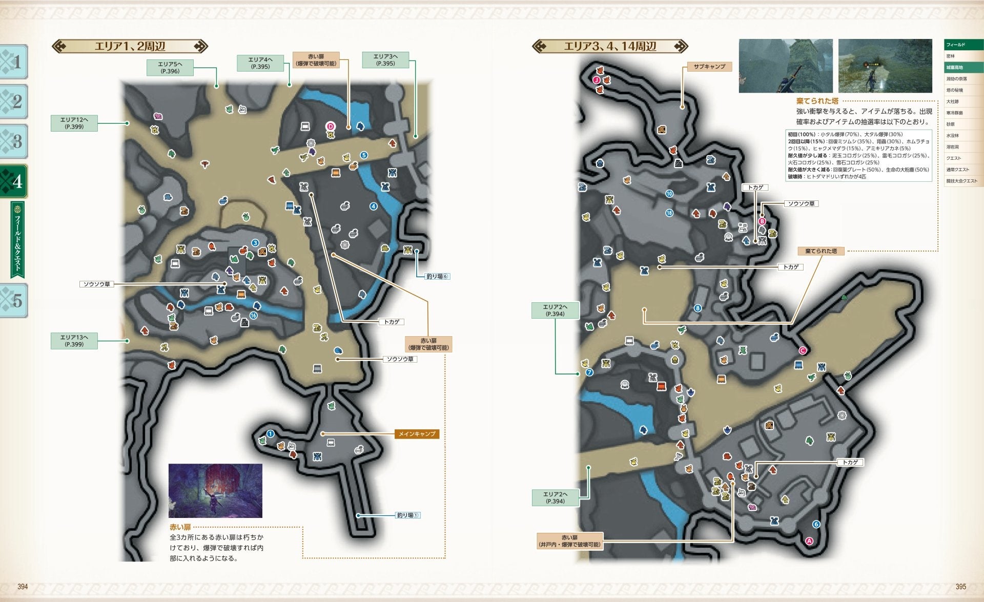 ・新登場エリア「城塞高地」と「密林」を中心に、入手アイテムや環境生物の位置情報がわかる