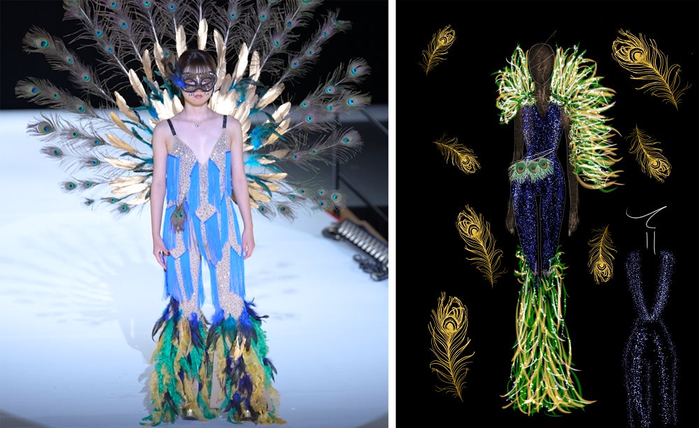 大会で何かの賞を取ると自分に自信がつくと思い、挑戦しました。2人で制作するという難しい事に初めて挑戦し、夏休みという会えない期間が1番大変でした。リハーサルで初めて衣装と孔雀の羽根をあわせて、想像よりいいものが出来たと感じ嬉しかったです。