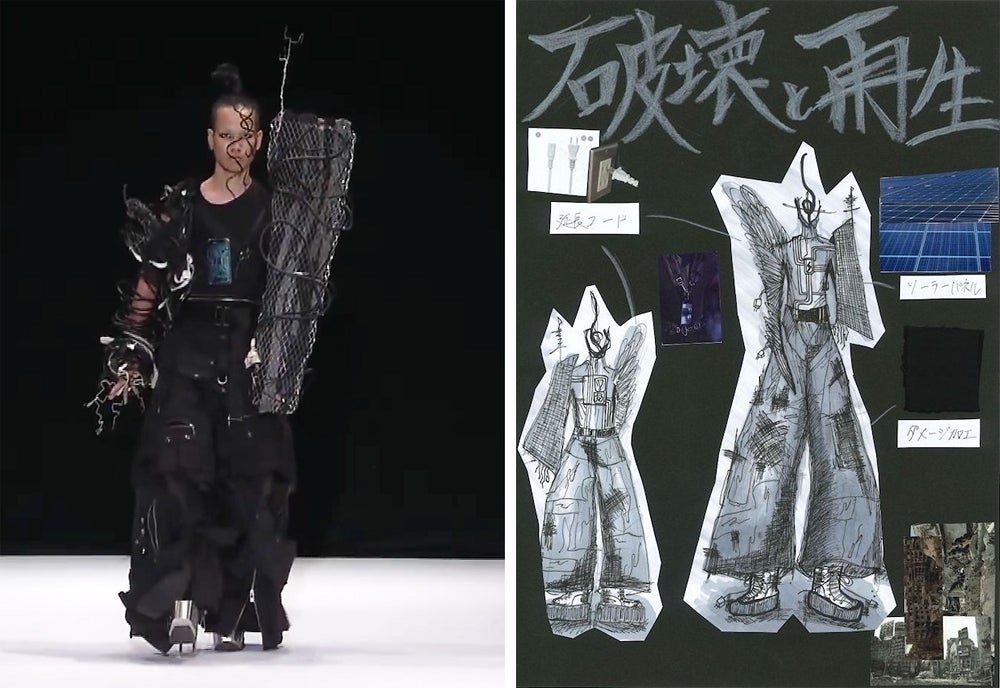 普段扱うことのない素材、服飾資材でないものをファッションに落とし込む事がとても大変でした。ファッションとして見られるように講師の方のアドバイスを参考に何度も何度も試行錯誤して制作したので結果がついて来なかったのは納得いきませんが、今回のファッション甲子園での経験はこの先かなり重要になってくると感じています。