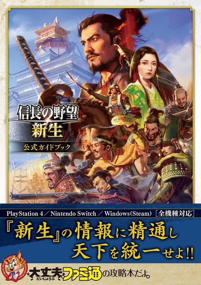 『信長の野望·新生 公式ガイドブック』は、新システム解説のほか、大名別攻略法、シナリオ別大名データ、武将情報、政策や特性データ、国別データなどプレイの参考になる情報が満載で読み応えたっぷりです。PS4版、Nintendo Switch版、Windows(Steam)版にすべて対応しています。