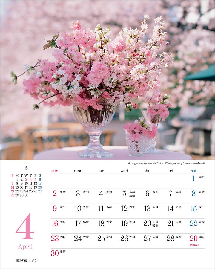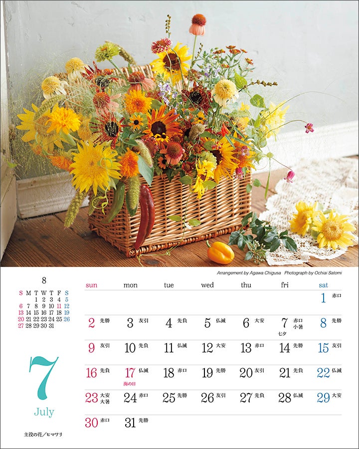 『花時間』カレンダーシリーズのなかでもミニサイズでとっても使い勝手のいいのが、この卓上版。毎月めくるたびに美しい花の写真が目に入り、日々癒されること間違いありません。カレンダー部分は少しゆとりをもたせたデザインなのでちょっとした書き込みができるのもポイントです。これさえあれば、テーブル・デスク用のカレンダーは準備万端で来年を迎えられますよ!