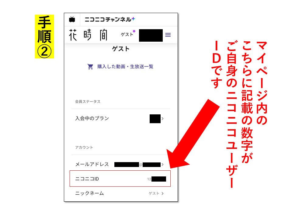 なお、ご応募いただく際に必要になるニコニコユーザーID(数字)は、下記の方法にてご確認のうえ、ご記入ください。半角数字最大9桁です。