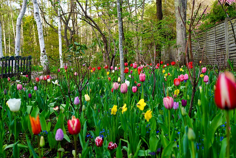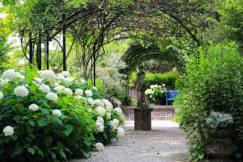 約1万平方メートルの地に、オーナーであるケイ山田さんの統一デザインのもと、設計から石工、ガーデナーまで、庭園の全てを英国人専門家が創園した日本初の本格英国式庭園です。1990年の開園当初に英国から移植した2,500本もの草花をはじめ、さまざまな植物を造園デザインとともに美しく成長している様を楽しめます。毎年6月に開催する「バラクラ フラワーショー」は”英国園芸&ライフスタイルの祭典”としてバラエティ豊かな催しがあり、全国から多くの人々が訪れる一大イベントです。季節ごとに違った顔を見せるイングリッシュガーデンに、足を運んでみてください。
