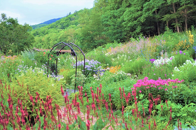 450品種以上、約2万株の花々が見る人を癒してくれます。美しい紫色の「キャットミント」やかわいいピンクの「ゲラニウム」など小路を進むたびに、季節に沿った楽しみが尽きません。また、ガーデンと同名のテレビドラマ『風のガーデン』(フジテレビ系)の舞台でも有名で、倉本 聰さんが脚本を手がける作品としては『北の国からシリーズ』『優しい時間』に続く”富良野三部作”の第3弾の位置づけです。北海道の澄んだ空、富良野の風を感じながらロケ巡り気分も味わって小径を散策してみてはいかがでしょうか?