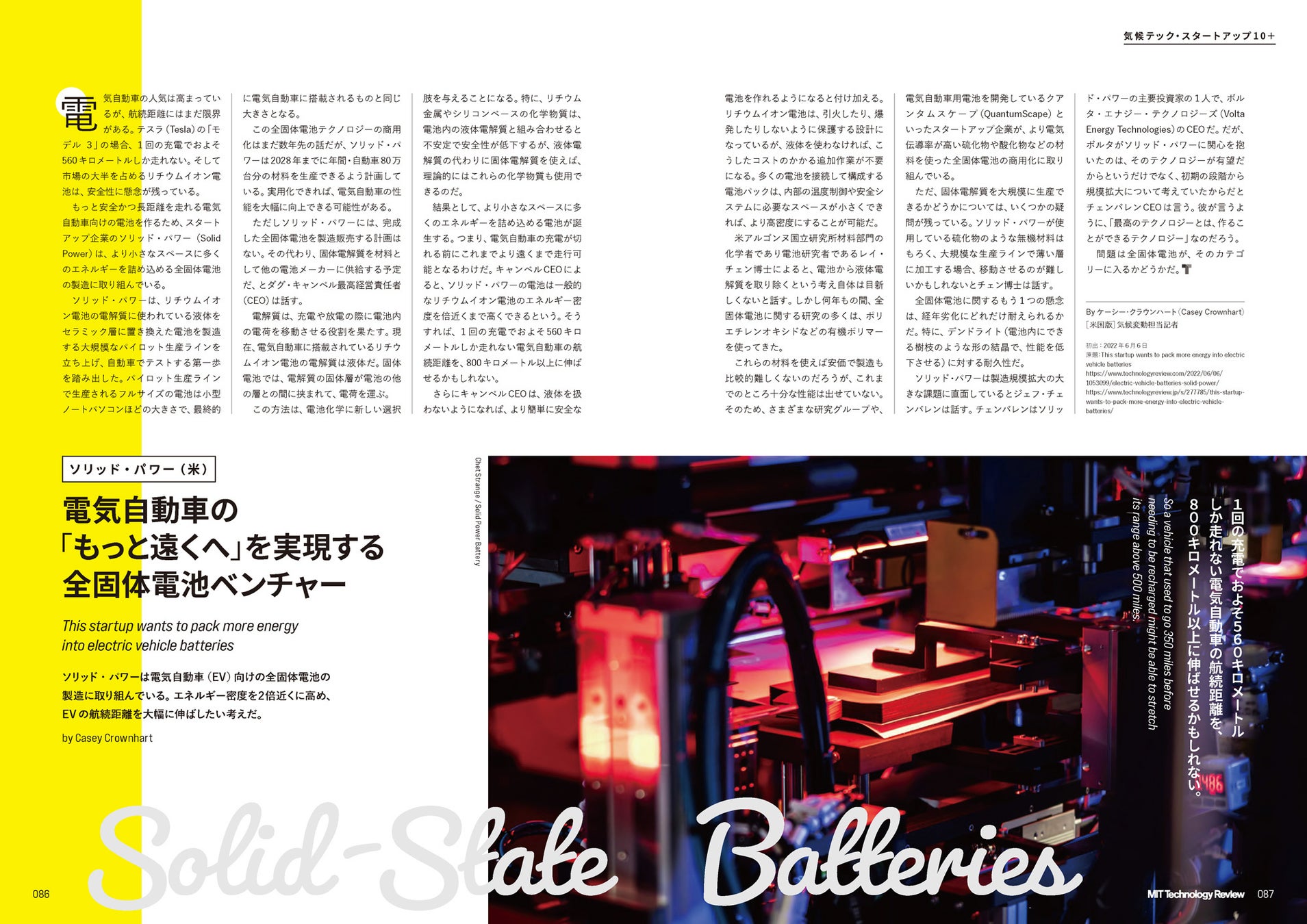 世界各国が公約する「2050年カーボンニュートラル」を実現するには、既存の手段や技術では限界があります。そこで欧米を中心に、気候変動問題をイノベーションで解決しようとする「気候テック(クライメート・テック)」スタートアップ企業がいま急速に立ち上がっています。大容量の次世代バッテリー、二酸化炭素の回収・貯留、航空機用のバイオ燃料など、ユニークなアプローチで脱炭素に挑むスタートアップの取り組みを紹介します。
