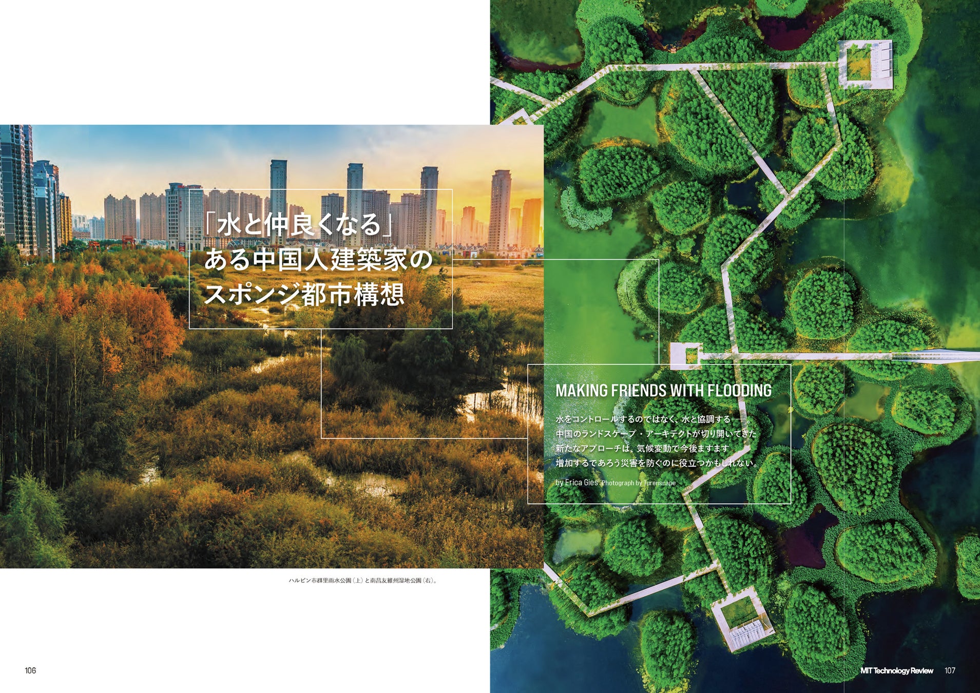 温室効果ガスを削減し、気候変動を「緩和」するだけでは、甚大な被害をもたらす異常気象や自然災害などへの備えとしては不十分です。そこで、気候変動へ「適応」するための取り組みも世界では広がっています。北京のランドスケープ・アーキテクトが提唱し、実際に各地の都市に導入されつつある「スポンジ都市」構想について、豊富なビジュアルで紹介します。