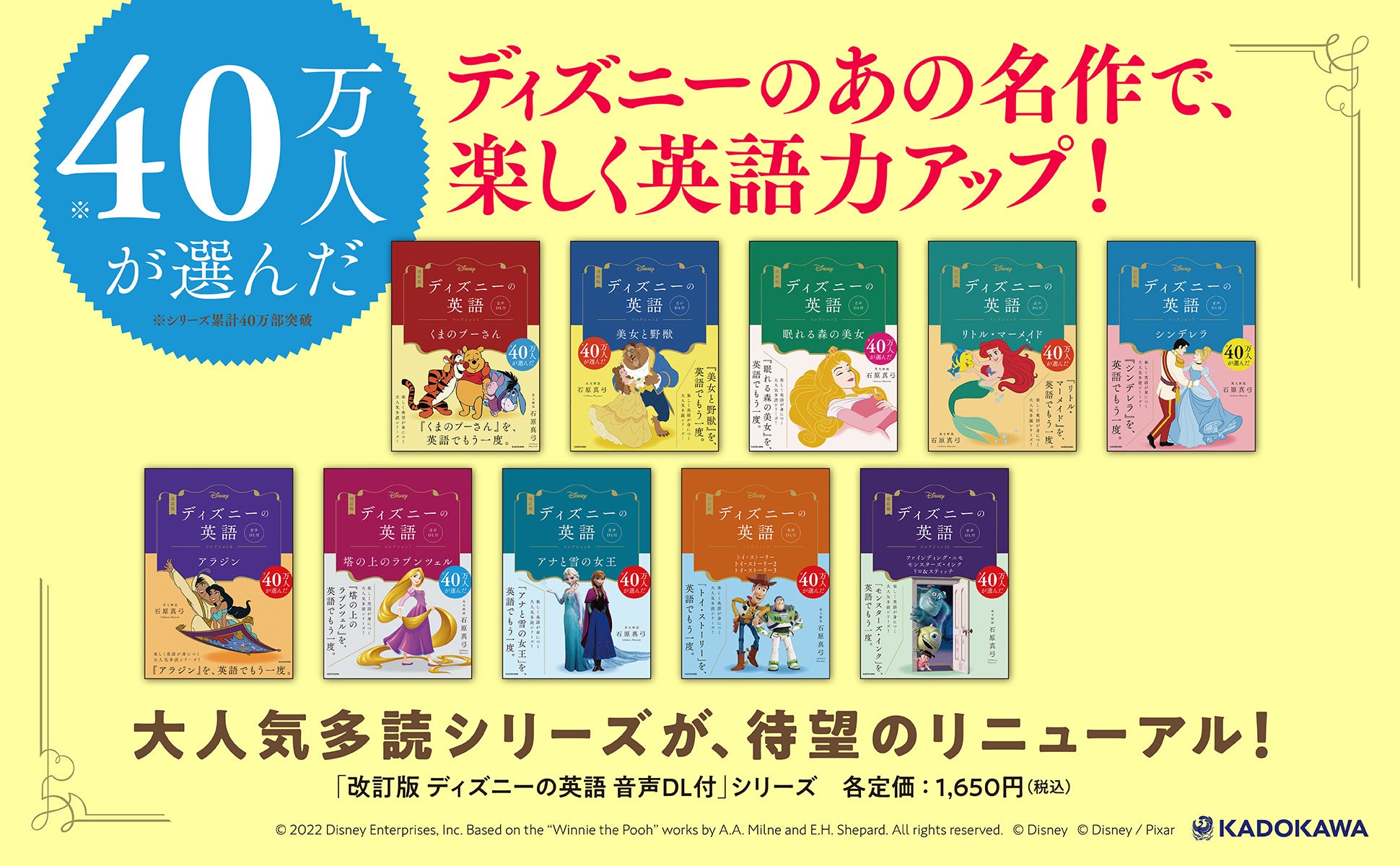 『ディズニーの英語』は、ディズニーの作品を使って、英語を「読む」「聴く」力を楽しみながらアップさせることができるシリーズ。
