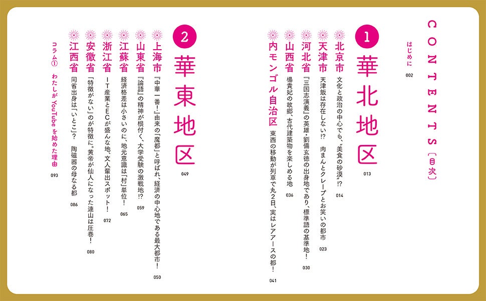本書でも、ヤンチャン自身の経験や各地域出身者の「生」の声もふんだんに取り入れ、中国33地域のユニークな食文化やトレンド、人間模様などを楽しい語り口で徹底解説します。