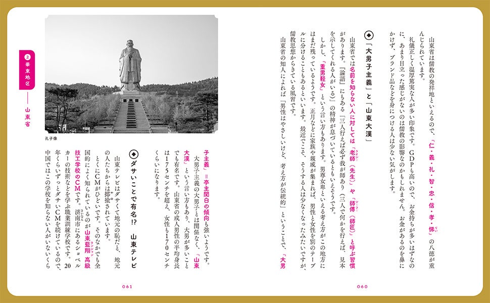 著者より「14億人・56種の民族が暮らす中国各地は、歴史・食文化・人間模様も千差万別。この本で、中国の新しい魅力を知ってください!」【内容について】