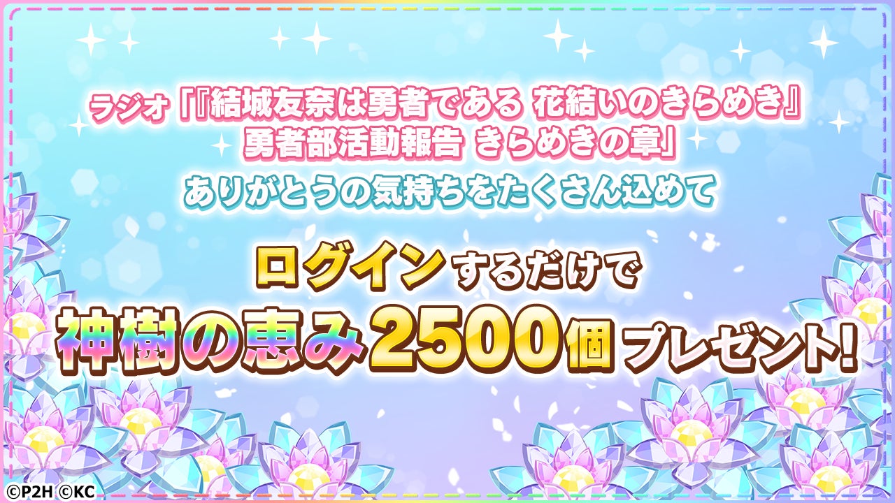 ラジオ「『結城友奈は勇者である 花結いのきらめき』勇者部活動報告 きらめきの章」をご視聴いただいている皆さんへ感謝の気持ちを込めて神樹の恵み 2500個をプレゼントいたします!