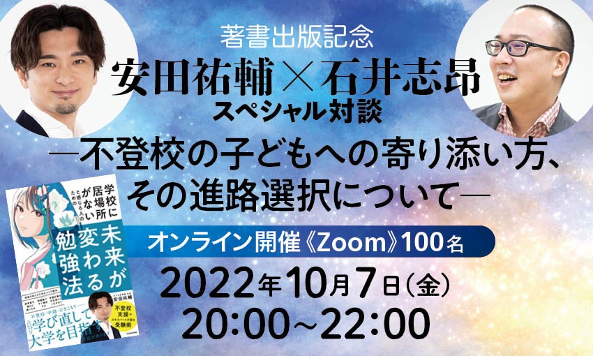 【著書出版記念 安田祐輔×石井志昂スペシャル対談 -不登校の子どもへの寄り添い方、その進路選択について-」詳細ページ】