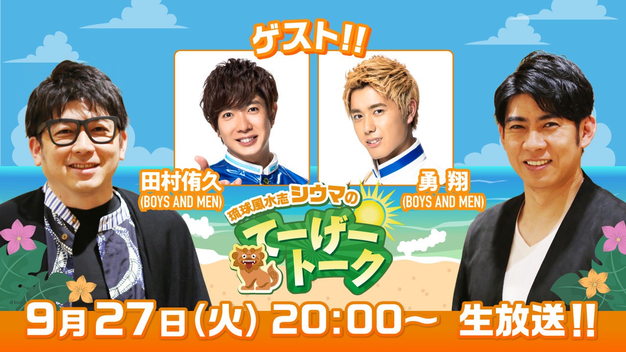 9月27日に行われる生放送にゲストとして、エンターテイメント集団「BOYS AND MEN」の田村侑久、勇翔がそれぞれ相談ごとをもって登場。