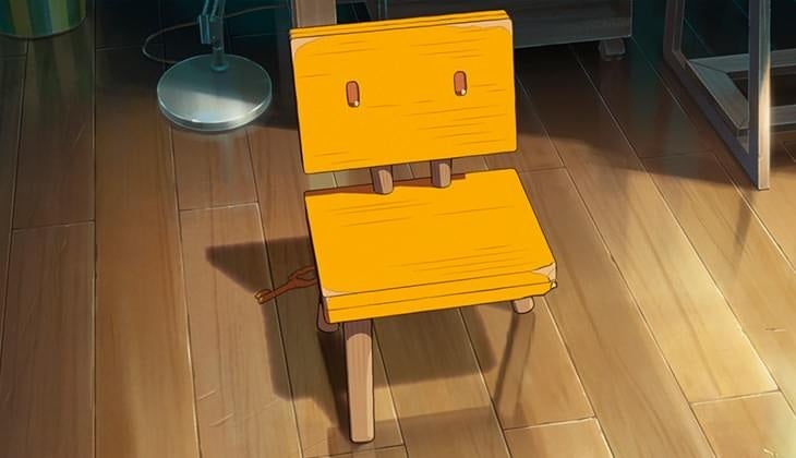 すずめが子どものころに使っていた椅子。閉じ師の青年・草太が姿を変えられ、3本脚で動き出す。