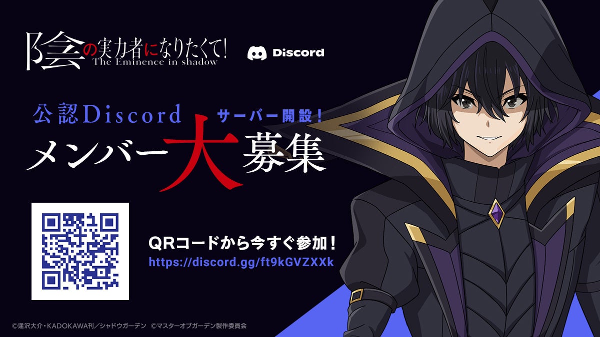 小説、コミックス、アニメ、ゲーム、全ての『陰の実力者になりたくて!』を好きな方を対象としたファンコミュニティとして、公認Discordを公開いたしました。