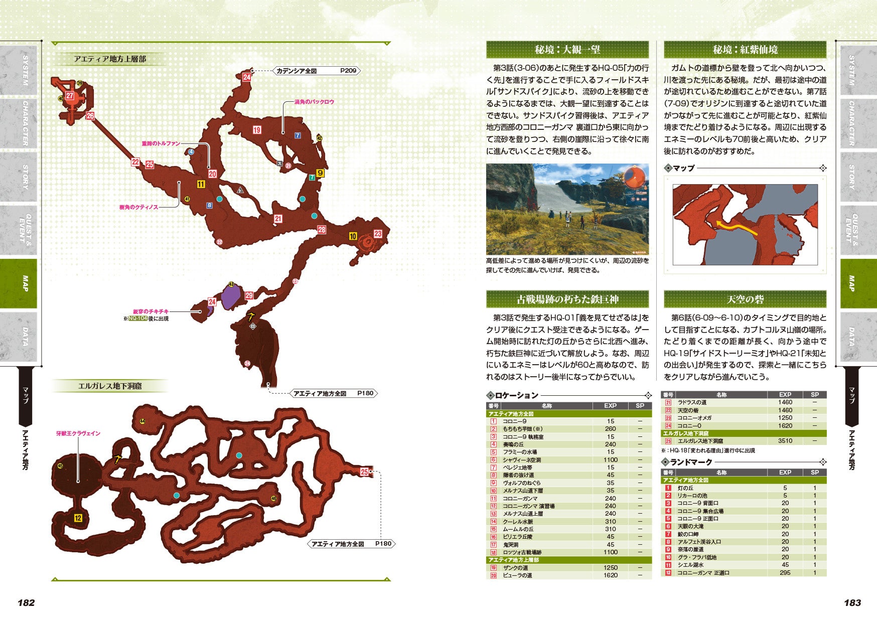 各フィールドのロケーションやランドマーク、コンテナや兵士の骸など、探索に役立つマップ情報をチェック!