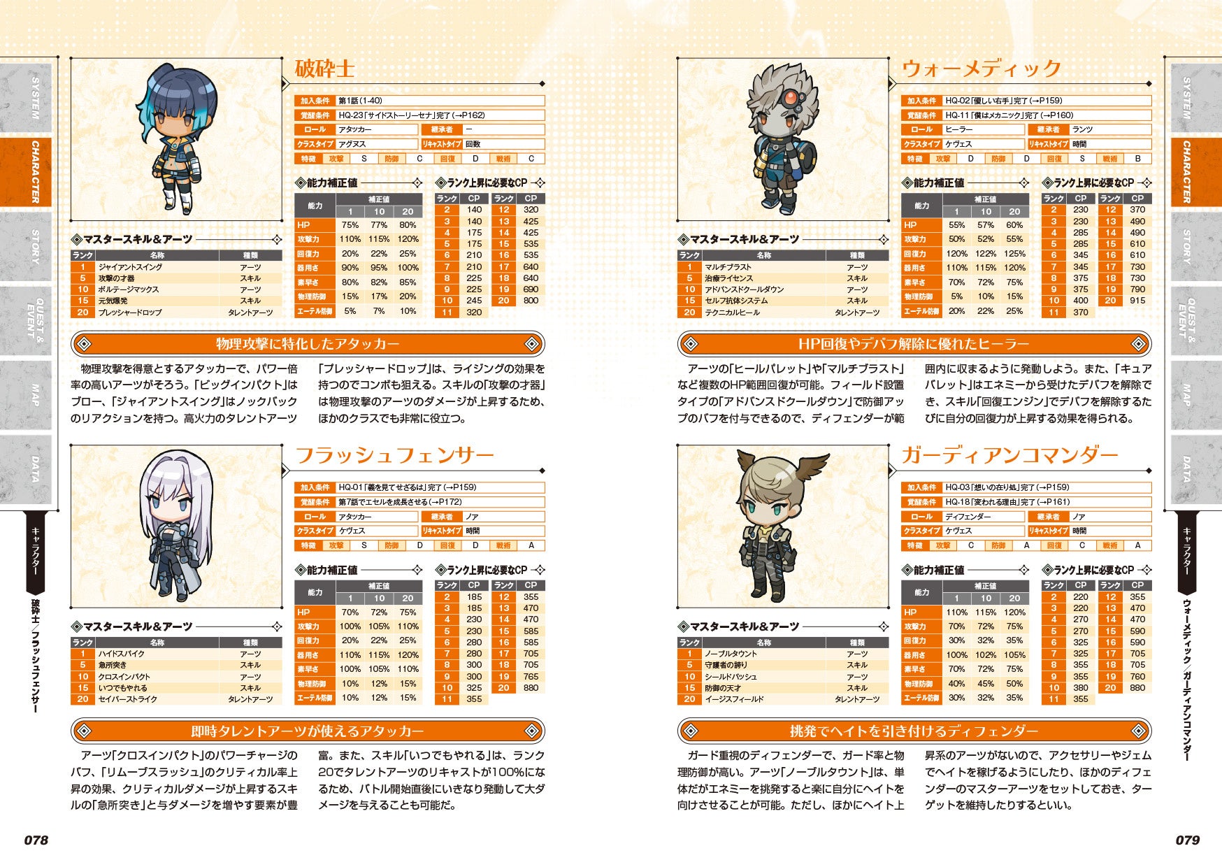 ヒーローを含むキャラクターごとの特性を詳しく解説。また、各クラスの特徴やアーツ・スキルの情報も完備!