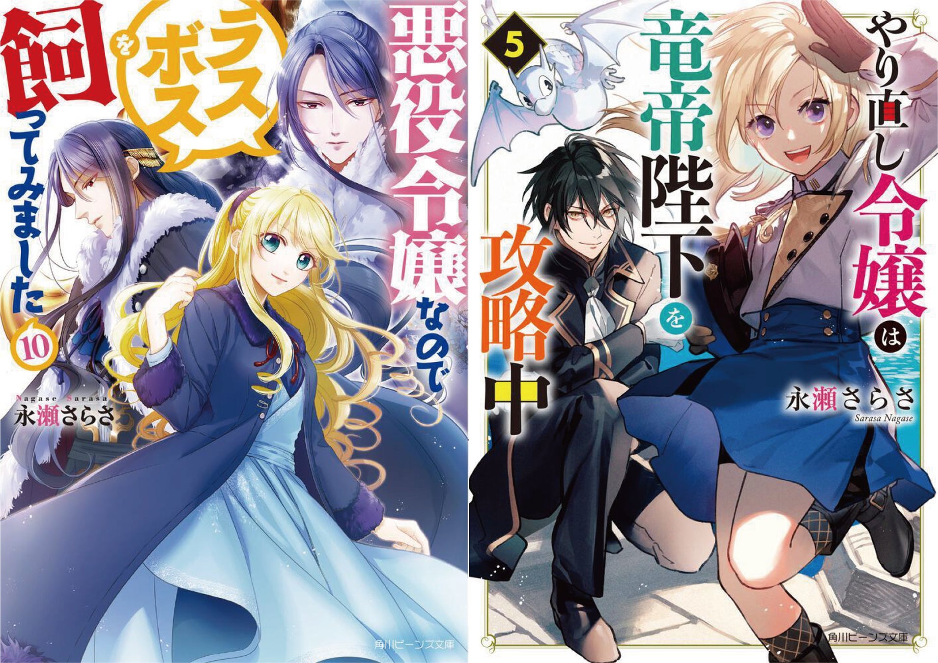 角川ビーンズ文庫は、永瀬さらさの最新作『悪役令嬢なのでラスボスを飼ってみました』第10巻と『やり直し令嬢は竜帝陛下を攻略中』第5巻を9月30日に同時発売いたしました。