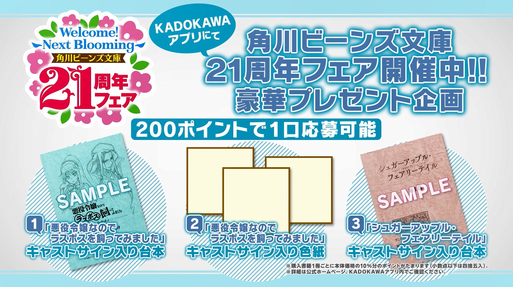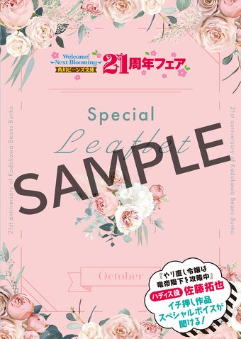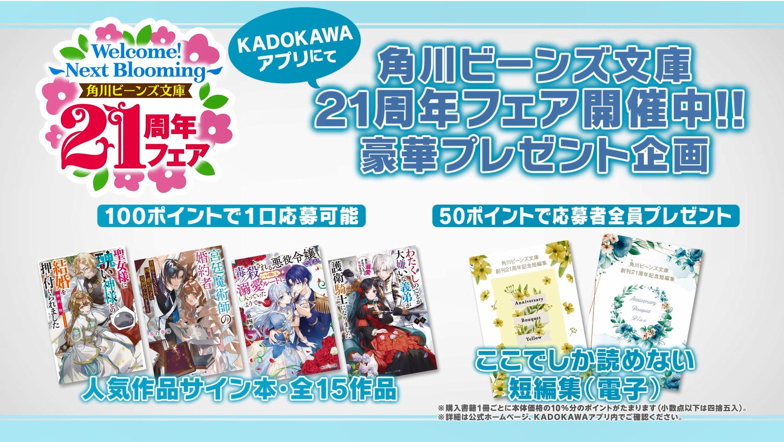 おかげさまで角川ビーンズ文庫は2022年10月で創刊21周年を迎えます。角川ビーンズ文庫をご愛読いただいている皆様に感謝の気持ちを込めて、21周年フェアを開催いたします! 今年のテーマは"Welcome! ~Next Blooming~"です。創刊から21年経ってもなお成長し、花開いていく角川ビーンズ文庫をお楽しみください。