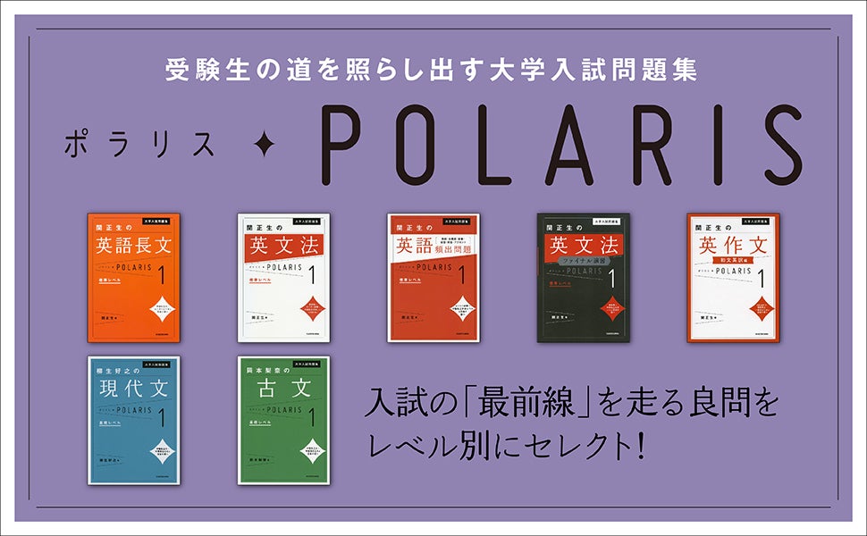 「ポラリス(Polaris)」は北極星のことです。旅人を導く北極星のように、受験生の道を照らし出したいという願いが込められた本シリーズは、テーマ別に最新の良問を収載した大学受験問題集として2016年の発刊以来多くの受験生にご使用いただいてきました。