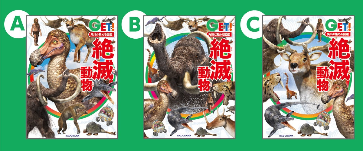投票の結果、『角川の集める図鑑GET! 絶滅動物』の表紙は「B」に決定!