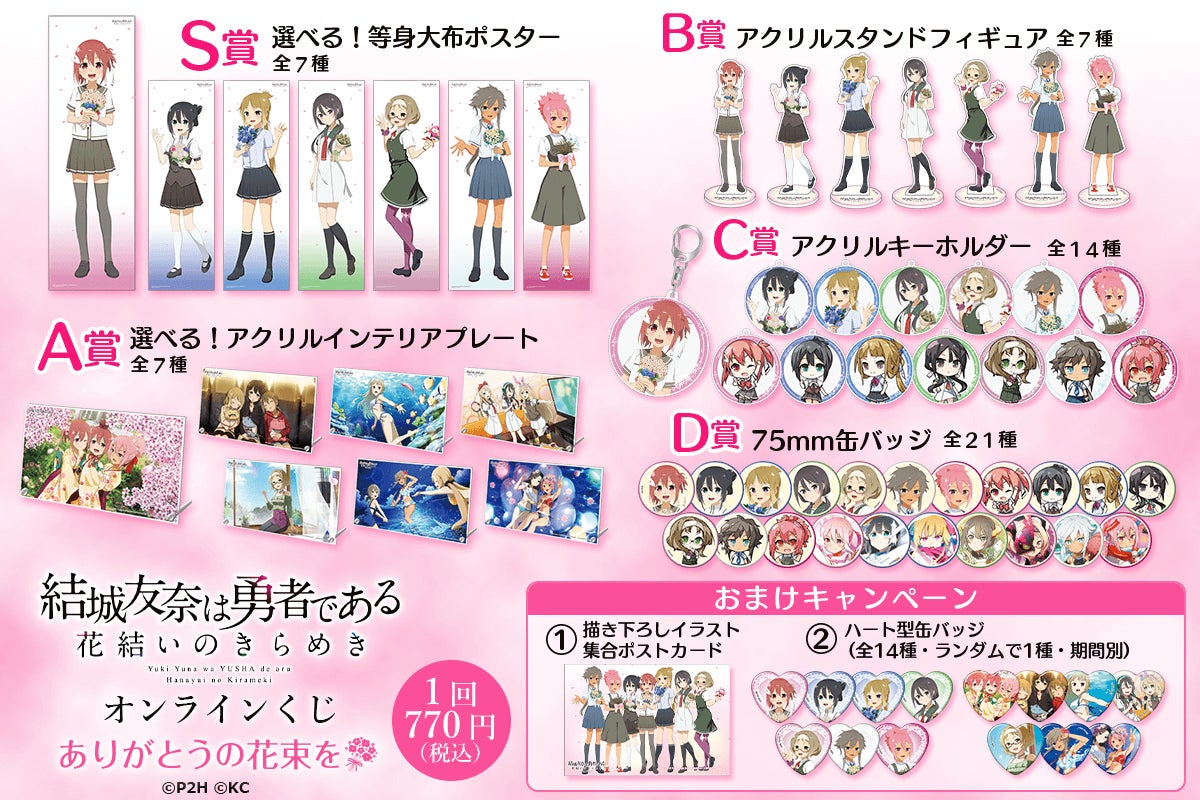 商品はグランドフィナーレのために描き下ろしたイラストなどを使用したオリジナルグッズとなります。また期間中に“リツイートキャンペーン”として、「くじ引き堂」のTwitter公式アカウントをフォローおよび対象ツイートをリツイートした方の中から抽選で3名様に「D賞 75mm缶バッジ全21種セット」をプレゼント! この機会をお見逃しなく!!