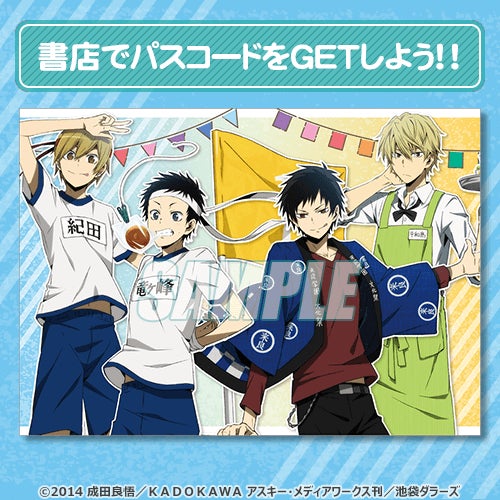 <デュラララ!!×2 書店限定おまけつき10連セット概要> 書店に掲示しているポスターに記載しているパスコードを使用して、くじ引き堂にて【書店限定10連セット】を購入すると「ポストカード」を1枚もれなくプレゼント。 ※パスコードを入力しないと購入できません。パスコードは書店に掲示しているポスター及び告知POPに掲載されております。 ※【書店限定10連セット】ご購入時もおまけキャンペーン1及びおまけキャンペーン2の対象となります。 ※限定ポストカードは【体育祭くじの書店限定10連セット】と【文化祭くじの書店限定10連セット】で共通デザインとなります。ご注意ください。 |