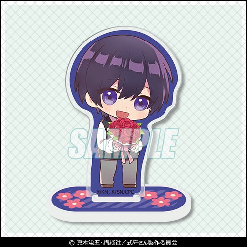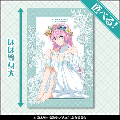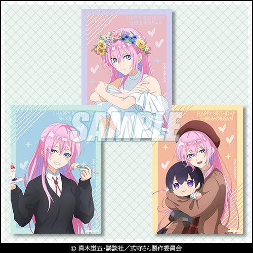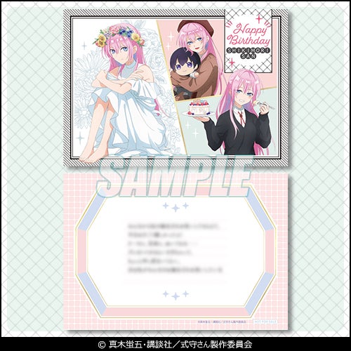 商品は、式守さんのお誕生日を記念した、式守さんの新規描き下ろしイラストによるオリジナルグッズとなります。式守さんの新たな魅力が満載の描きおろしイラストの商品や、和泉くんたちの可愛いミニキャライラストの商品など、オリジナルグッズを多数展開しております! また期間中に10連セットを購入すると式守さんからのメッセージカードやブロマイドもプレゼント!