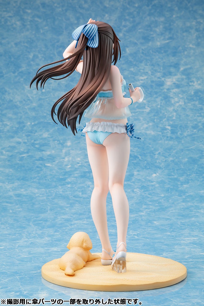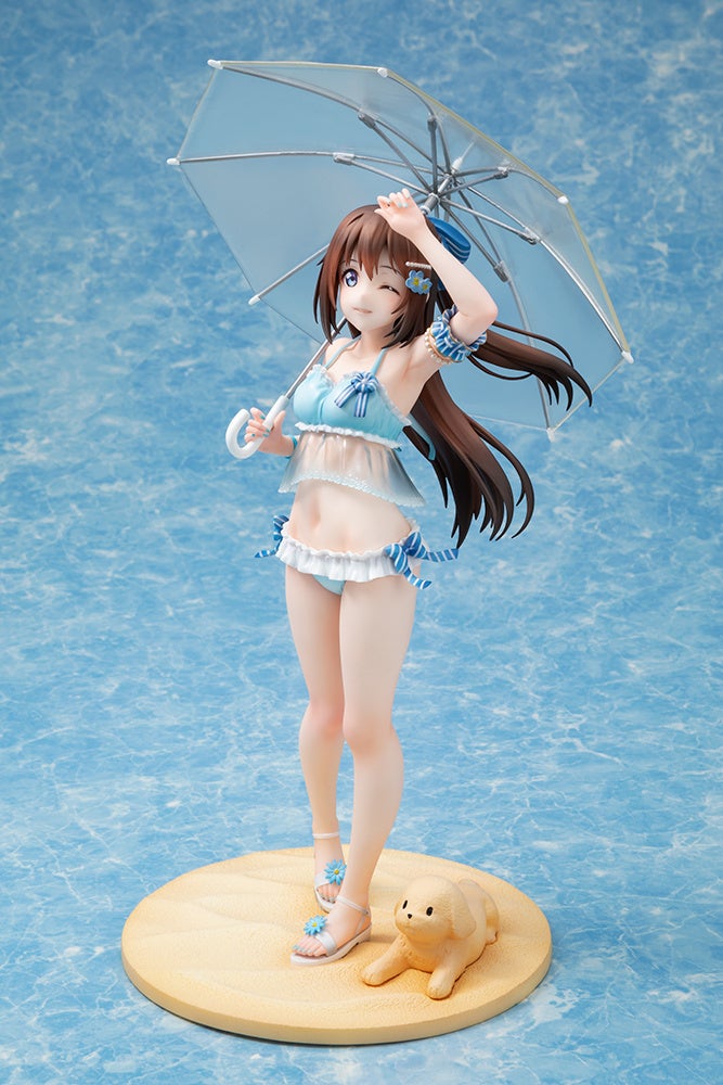 『ラブライブ!虹ヶ咲学園スクールアイドル同好会』お台場ビーチガールver.は、「お台場ビーチガール投票」で1位に輝いた桜坂しずくを、2C=がろあ先生による描き下ろしイラストをモチーフに立体化。可愛らしい水着に身を包み、ビニール傘を手に浜辺を歩いているワンシーンを丁寧な造形と繊細な塗装で表現。スラリと伸びる足のラインはもちろん、彼女の周りに流れる潮風も感じ取れるような、フワリと流れる髪やリボンなどもこだわって再現しています。また、砂浜をイメージした台座には彼女の愛犬「オフィーリア」をイメージした砂像が寄り添っているというのもポイントです。