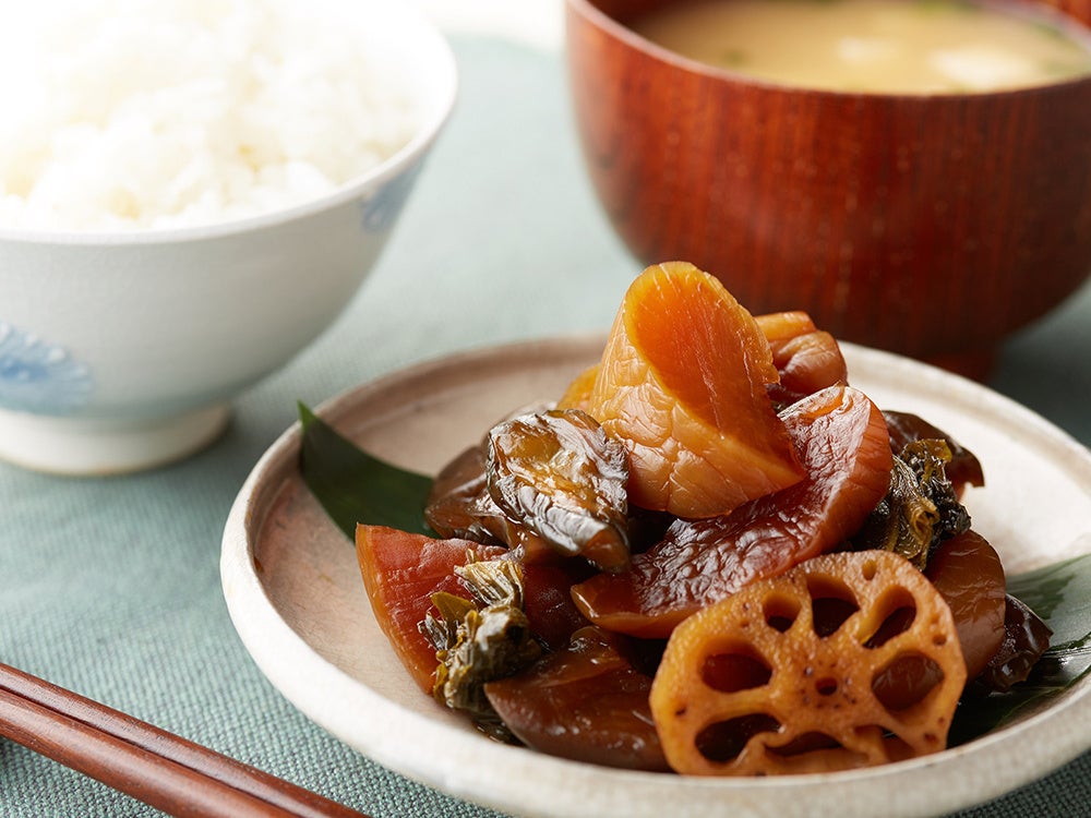 丸木屋(浅草焼き海苔)、和ナチュラルテイスト(ねぎみそ、ねぎバター醤油)、新井武平商店(秩父味噌)、河村屋(漬物)